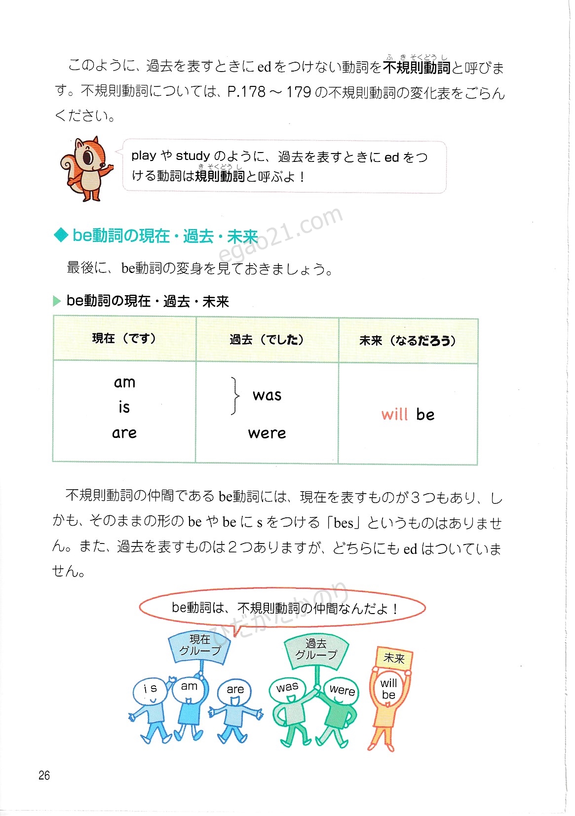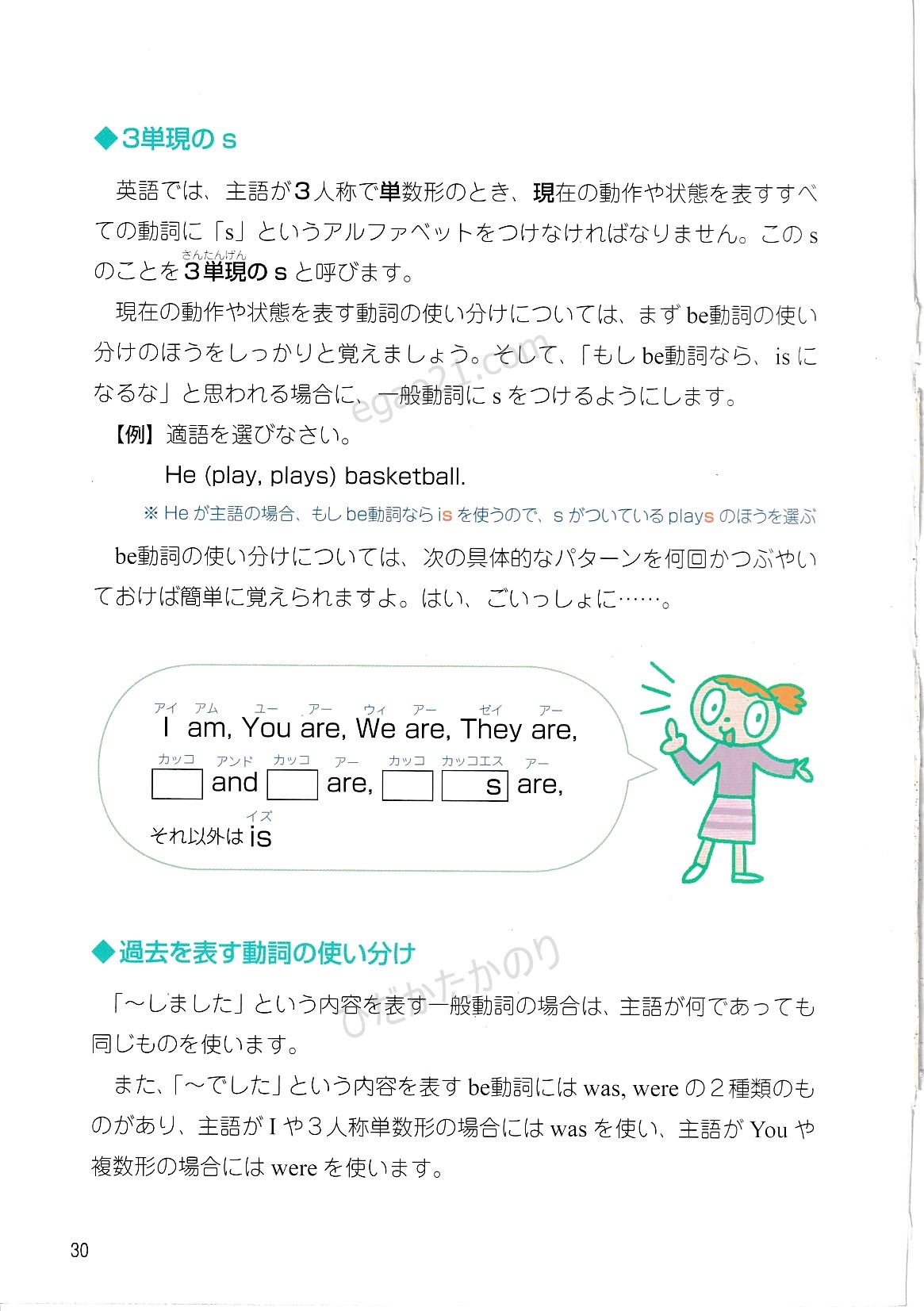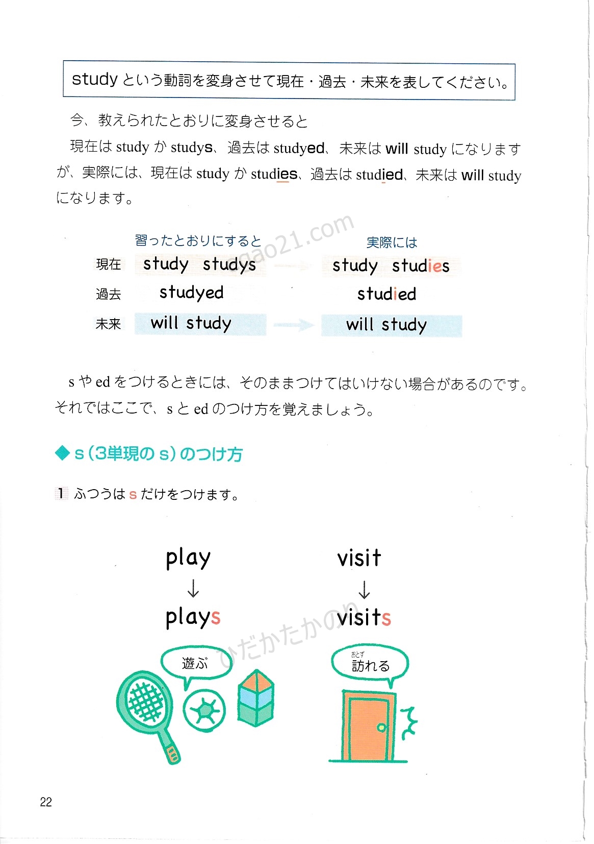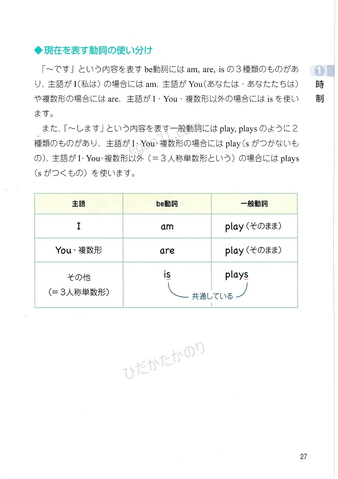 「~(し)ます」と訳される一般動詞の変身です。「です」と訳されるbe動詞の変身は、26ページに書いてあります。
