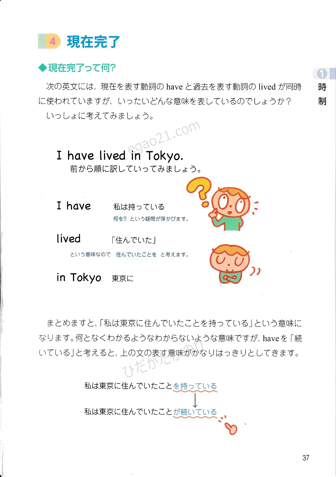 「トコトンていねいな英文法レッスン」のpart2(時制-現在、過去、未来、現在進行形、過去進行形、現在完了、現在完了進行形)を無料で公開しています。