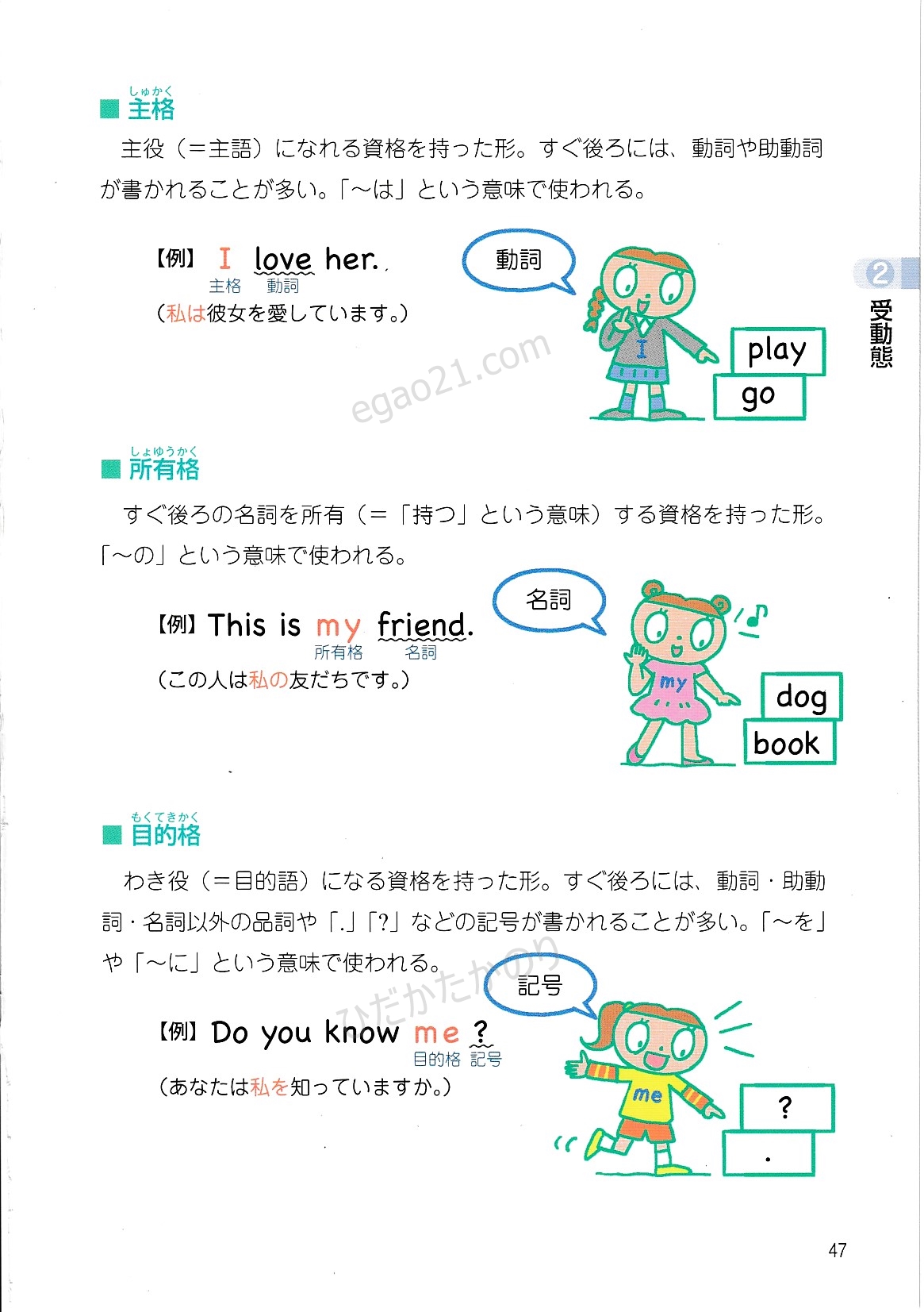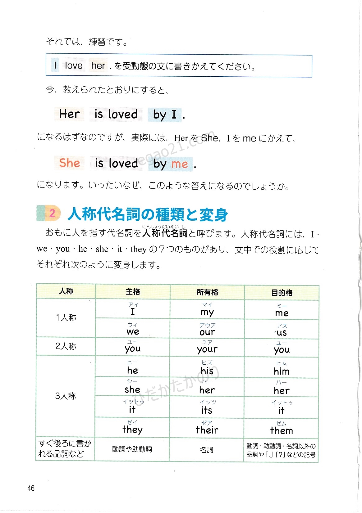(受動態、能動態、人称代名詞の主格、所有格、目的格)