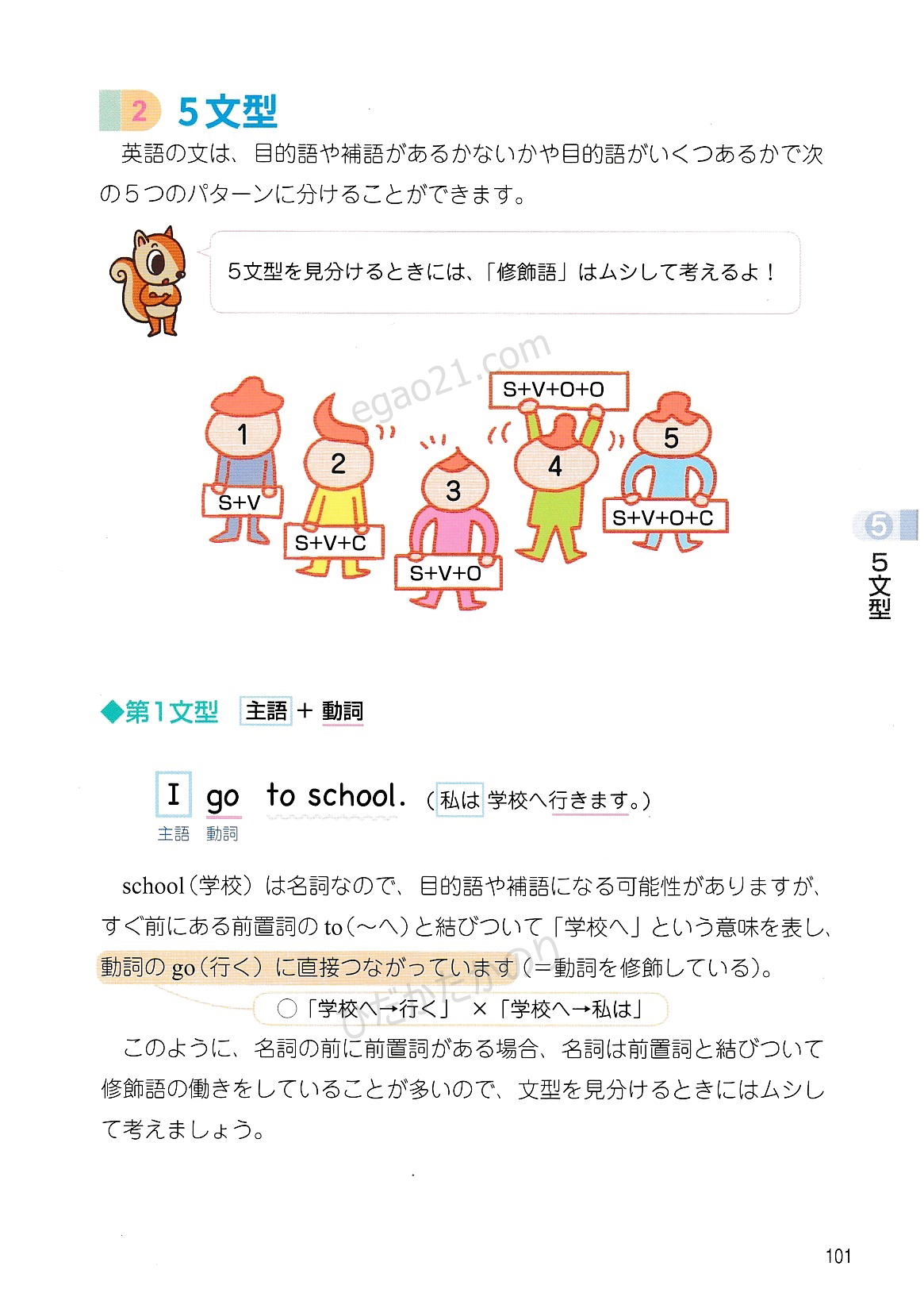 (5文型-第1文型〔SV〕、第2文型〔SVC〕、第3文型〔SVO〕、第4文型〔SVOO〕、第5文型〔SVOC〕、