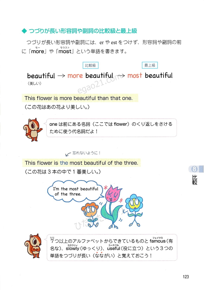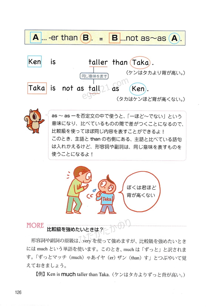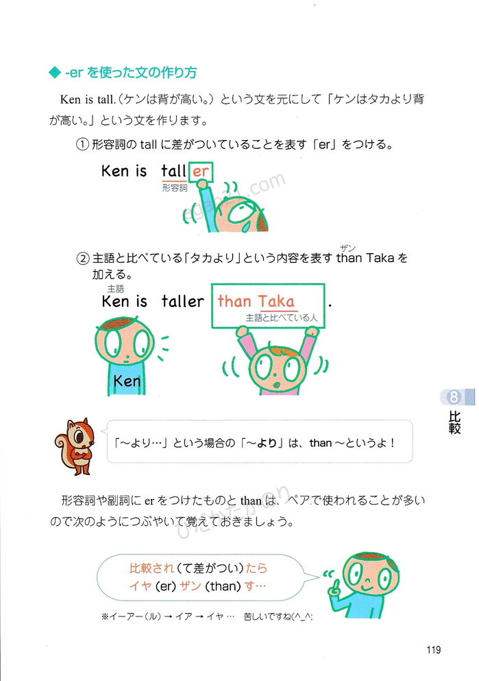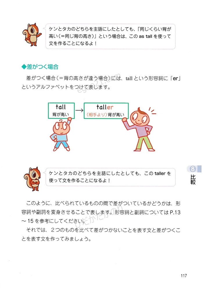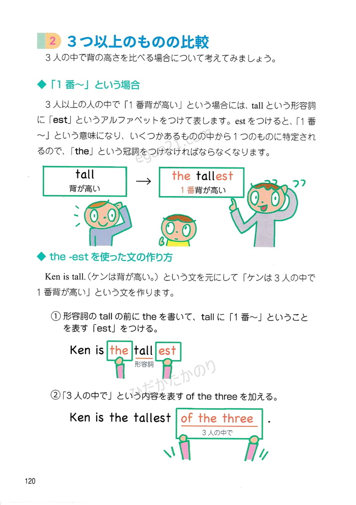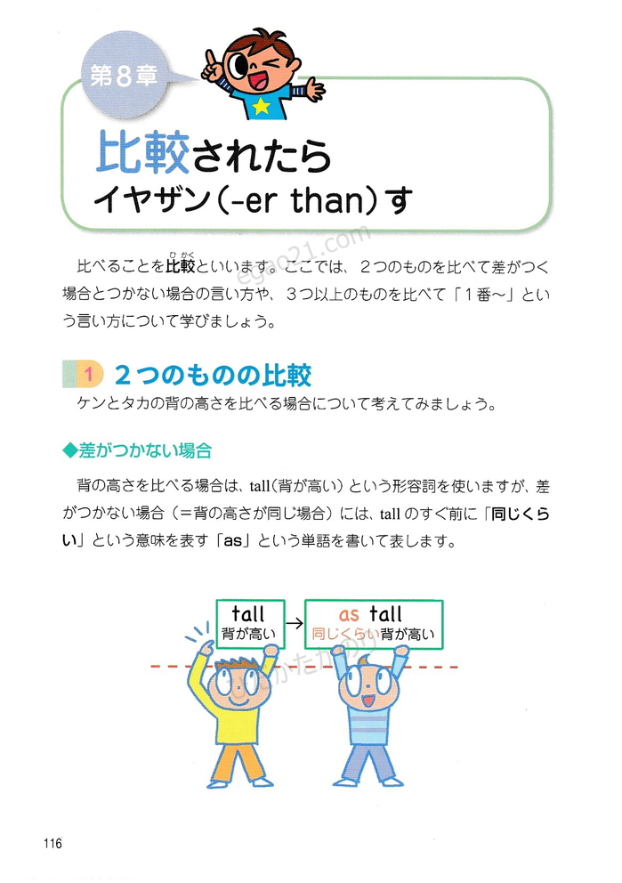「トコトンていねいな英文法レッスン」の第8章(比較-原級、比較級、最上級を使った文、erのつけ方、estのつけ方、つづりの長い形容詞や副詞の比較級や最上級を使った文)を無料で公開しています。