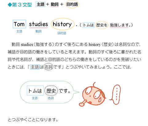 言わないS+V+Oなどの文型もきっちり抑えているのが特に気に入りました。これは基礎の基礎のはずなのになんで中学で
